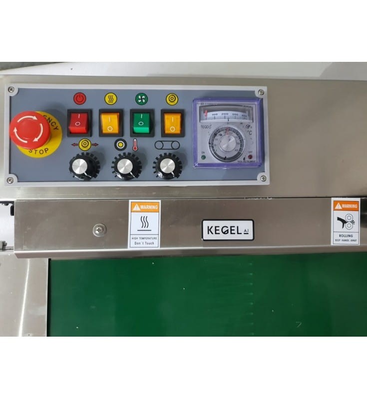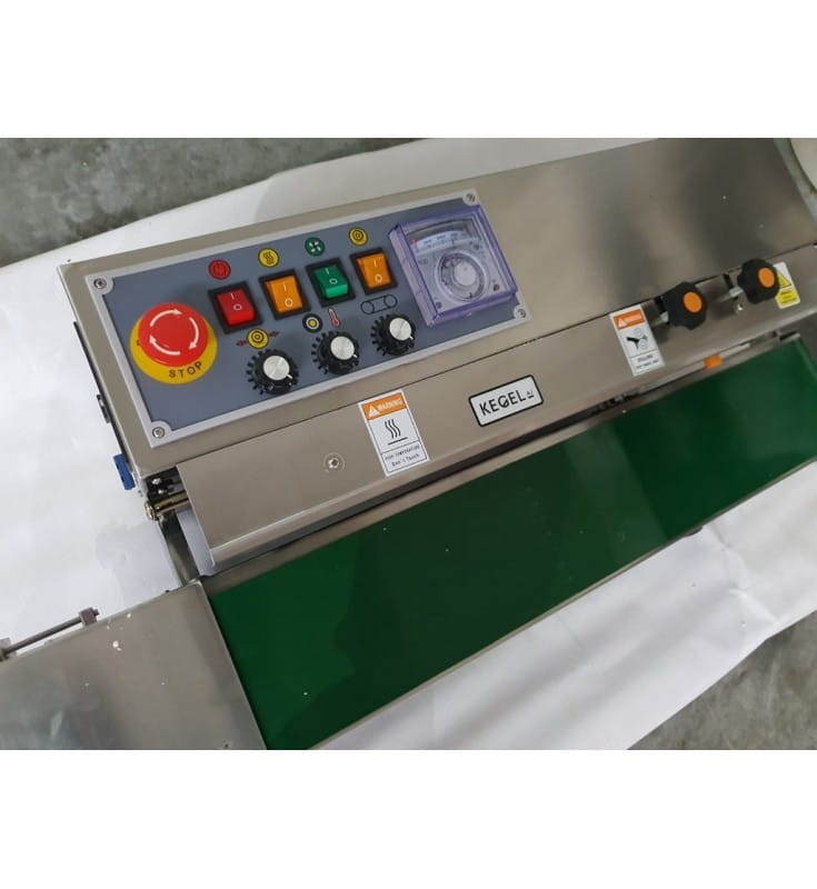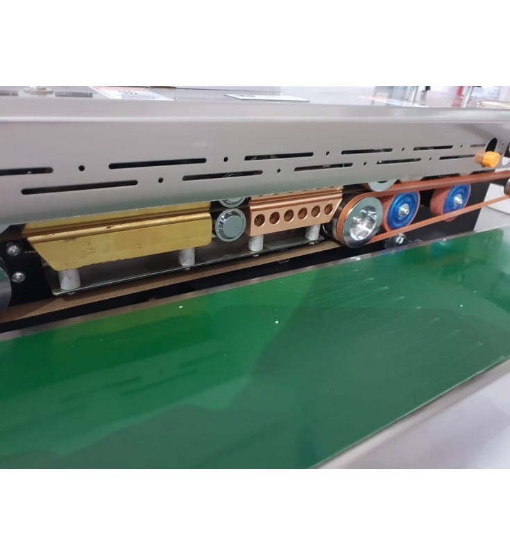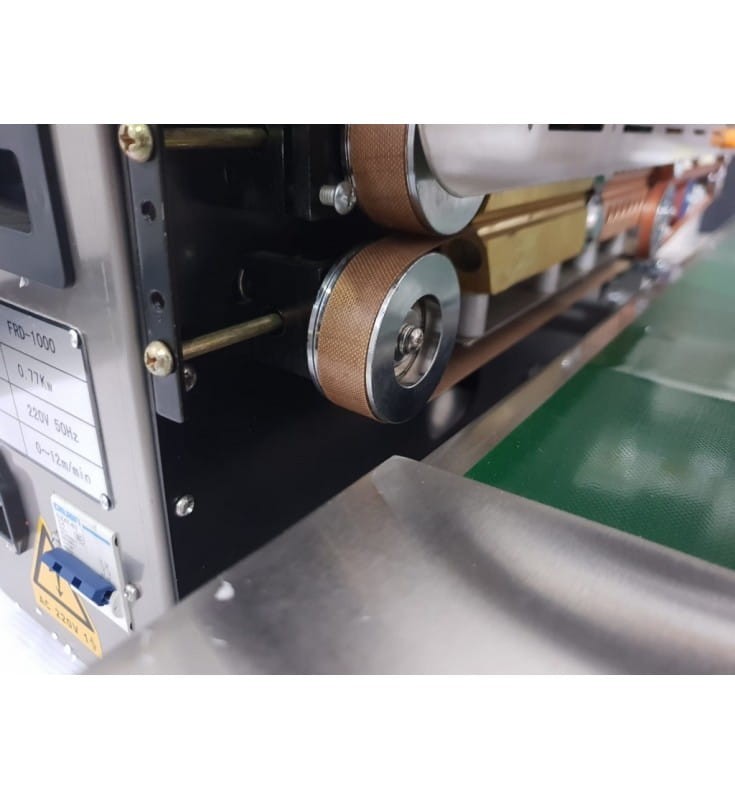 Zgrzewarka posiada fotokomórkę i datownik umożliwiający drukowanie na zgrzewie daty przydatności do spożycia, numeru partii itp.